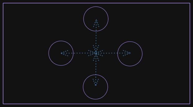 Écriver un programme qui place 4 cercles à partir du centre comme ci-dessous.
